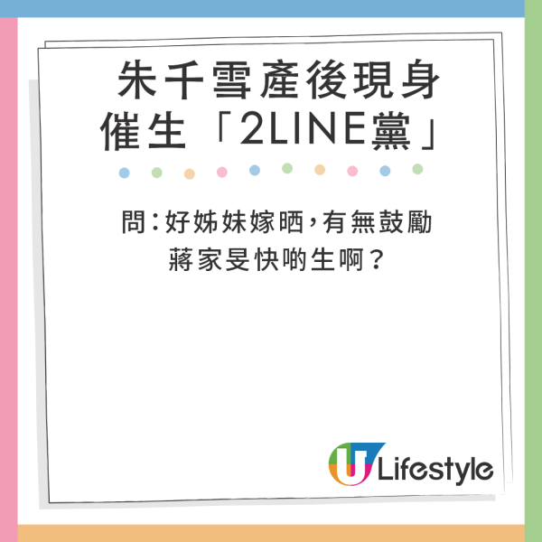 前港姐朱千雪自5月誕下囝囝後一直落力收身,最近現身山頂公開活動時透露自己未回復到產前身材,但上圍大升級,更大爆有催湯洛雯馬國明快啲生小朋友以及未來拍劇的計劃!