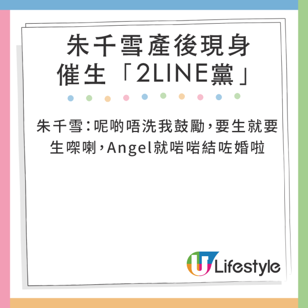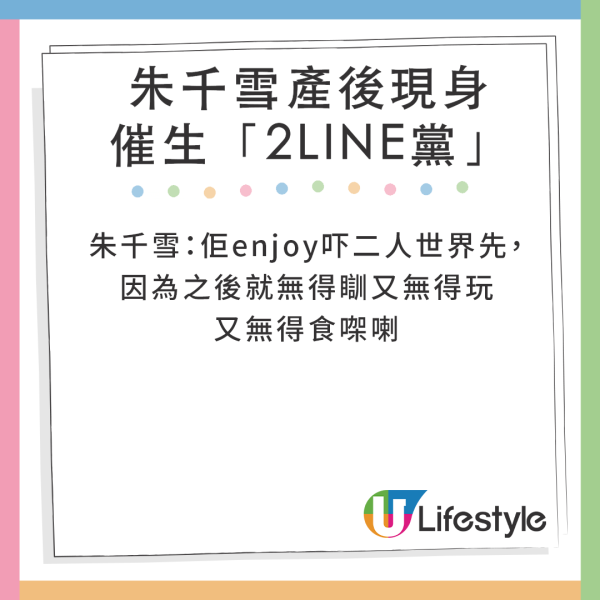 雖然5月誕下囝囝後,朱千雪雖然未完全修身,但上圍明顯大升級,她更笑稱自己今早先陪囝囝玩完再出門,亦指自己7月已經復工,包括律師樓工作、拍攝廣告、出活動以及社交平台工作等,但暫時未收到劇本亦未有拍劇的打算。
