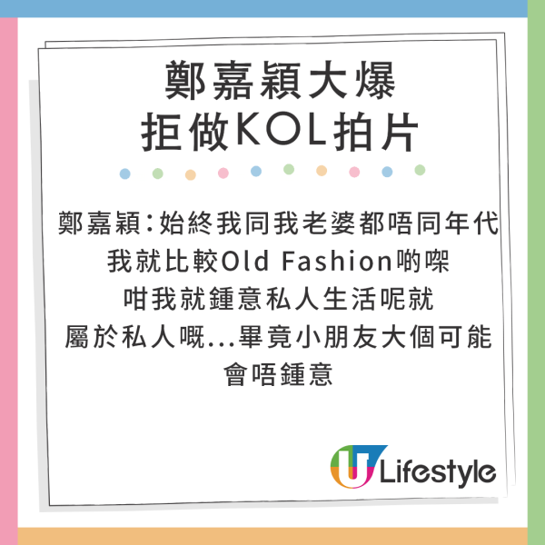 Grace經營社交平台搞得有聲有色,鄭嘉穎被問到會否與老婆囝囝齊齊拍片吸金時,他便大爆因一理由拒拍親子片。