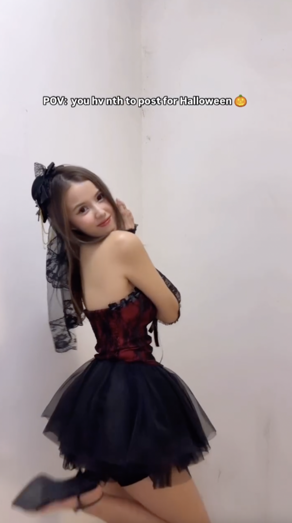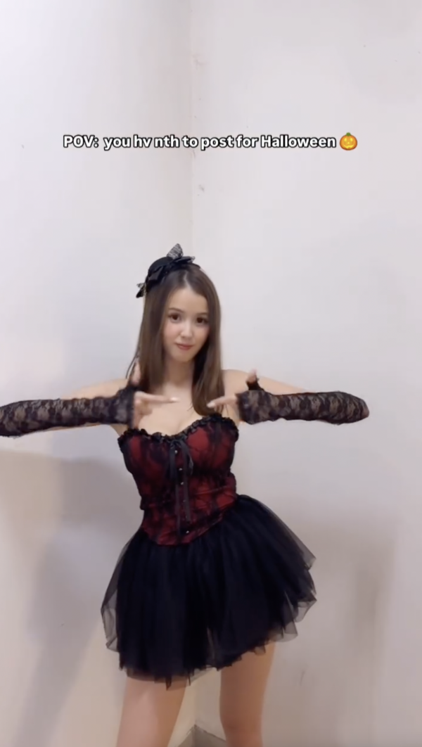 不時於社交平台上分享性感美照的Eris,日前上載一段短片慶祝萬聖節。片中的她穿上紅黑色的低胸短裙,帶上喱士手套,更大擺誘人的Pose,擠出深長事業線外,更綻放出甜美笑容,相當養眼!不少網民留言大讚並表示「鬼🔥咁靚lol😍」、「Outfit is fire (火辣的造型)🙀🙀😻😻😻」、「巧(好)鬼靚女😍😍😍」。