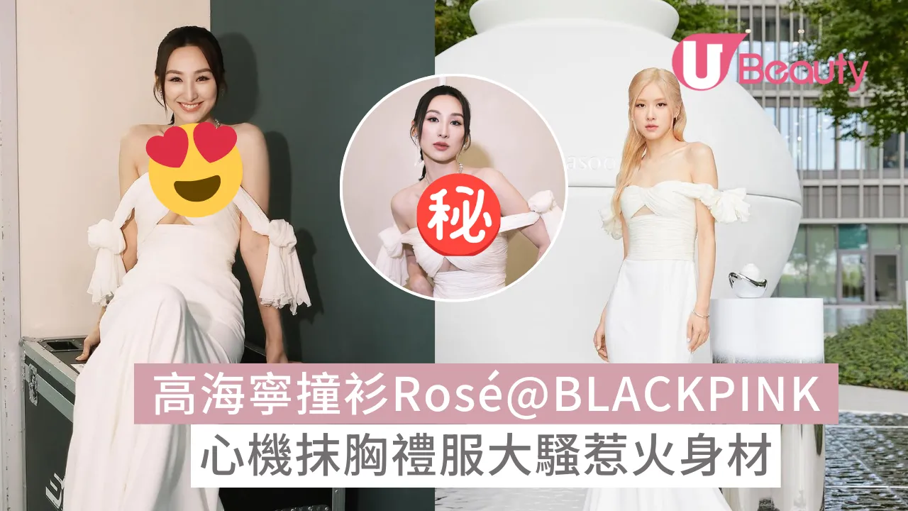 與高Ling一起撞上這件白色抹胸晚裝裙的是韓國女子天團BLACKPINK成員Rosé!早前Rosé獲韓國高級化妝品品牌擔任品牌大使,Rosé就在宣傳照中穿上這件晚裝裙。不過Rosé與高海寧的髮型不同,Rosé以招牌金色長髮,至於高Ling則綁上優雅的小馬尾,不失青春氣色。加上高Ling身形出名傲人上圍,所以穿上白色抹胸的画面很驚艷,難掩其豐滿上圍!所以與身型一向纖細的Rosé相比,高Ling的身材更時尚,看起來略勝一籌。