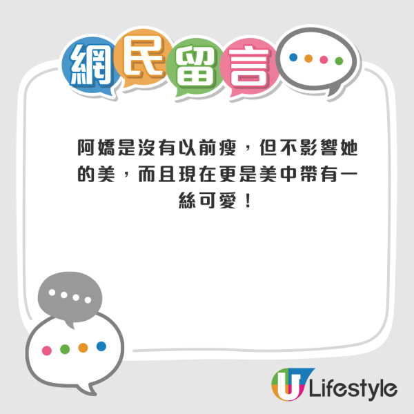 網民對於阿嬌疑似復胖的身形有不同的看法,有網民指阿嬌即使長肉了,也是好看,亦有網民指是角度問題。