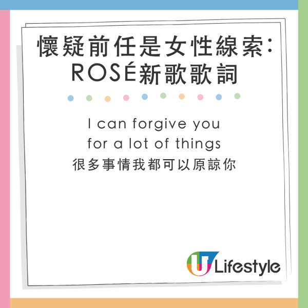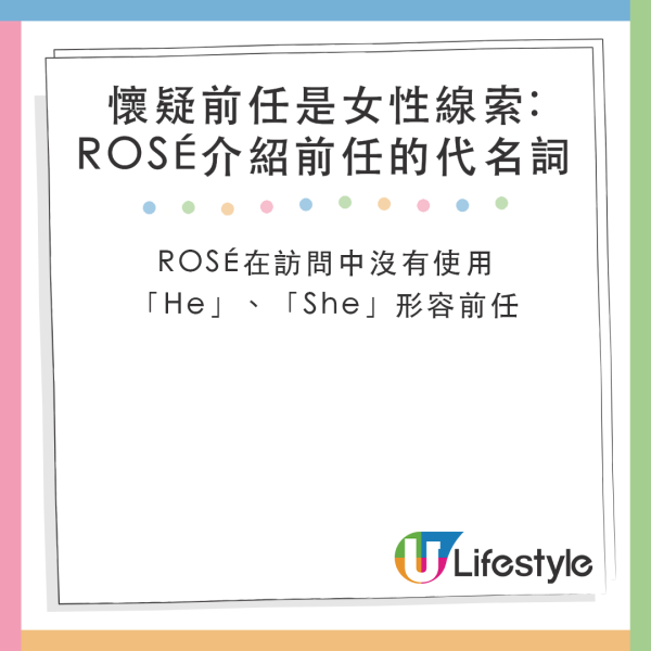 自從ROSÉ在受訪時爆出自己在出道後的戀愛經歷後,不少人都在猜測誰是ROSÉ的前任,最近ROSÉ被問到專輯中最喜愛的歌詞時,因一細節被網民猜測ROSÉ前任或是女生!