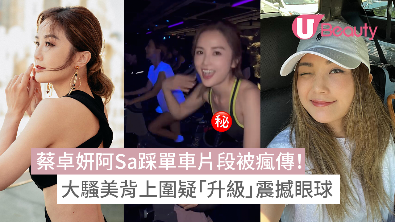 蔡卓妍(阿Sa)一向以甜美的外貌以及開朗的性格深受歡迎,最近修身成功的阿Sa在社交平台罕晒性感比堅尼的美照外,都頻頻分享運動美照,繼與關智斌(Kenny)在健身房的求婚小插曲,她早前再分享玩室內單車的片段,片中身穿貼身運動背心的阿Sa大騷美背之餘,仲有若隱若現的事業線,片段更被網民瘋傳,紛紛留言懷疑阿Sa的上圍「升級」。