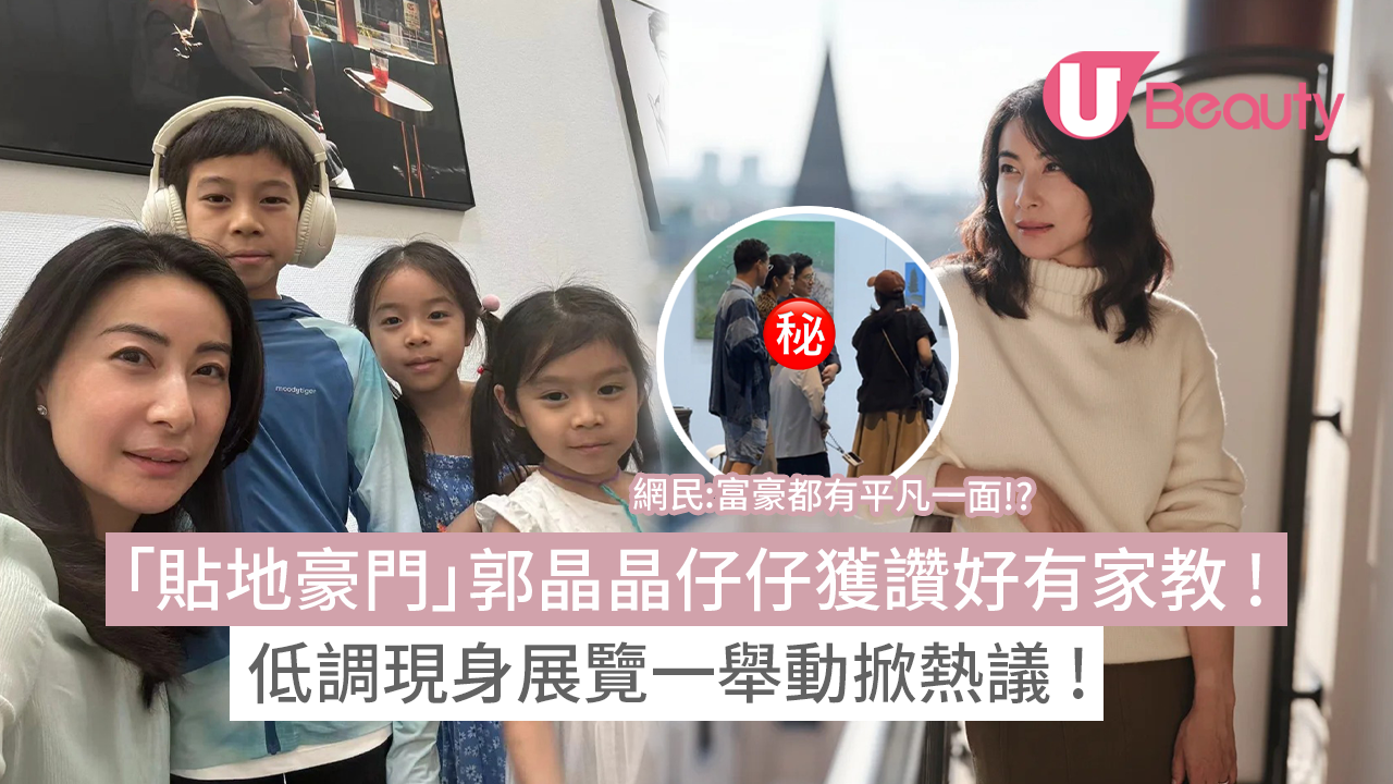 郭晶晶婚後育有大仔霍中曦、二女霍中妍及細女霍中怡,專注家庭的她嫁入豪門後依然十分貼地,最近與老公霍啟剛一家五口低調現身藝術展覽被網民野生捕獲,當夫婦二人與同行者欣賞畫作時,兒子耐心在旁等候的舉動被網民大讚「好有家教!」。