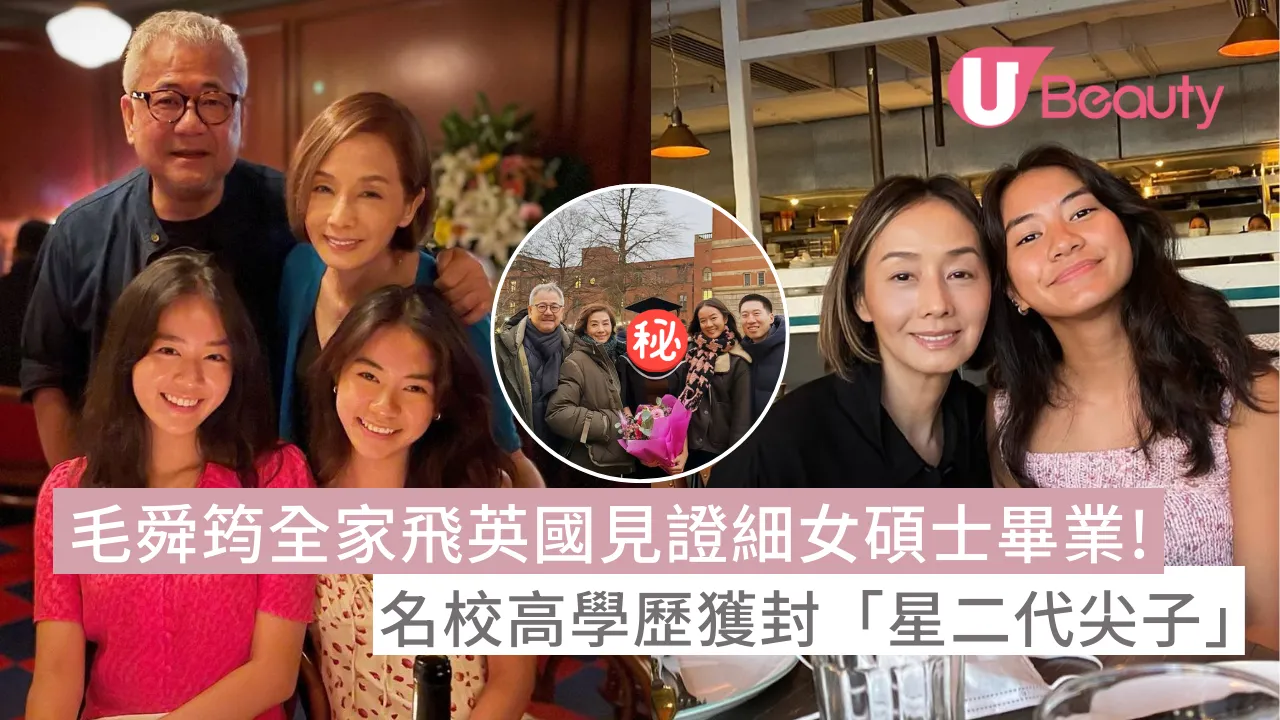 64歲的毛舜筠(毛姐)與導演區丁平結婚30年,育有兩名女兒。毛姐今年喜事連連,28歲的大女區令山年中出嫁,最近24歲的細女區亦山碩士畢業,正式成為一名物理治療師。毛姐一家更飛到英國出席畢業禮,關係相當不錯!