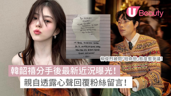 韓韶禧認愛柳俊烈後令自己陷入「小三」風波,被指介入柳俊烈與前女友惠利的戀情。韓韶禧不滿被外界無辜標籤,多次情緒失控在網上發言,形象一落千丈,更有不少代言突然被取消,最後二人的戀情公開了短短2個星期就宣布分手,速斬戀情。最近韓韶禧重返工作崗位,先在社交平台分享多張代言照片,又公開了粉絲為自己應援的照片,更親自回覆粉絲!