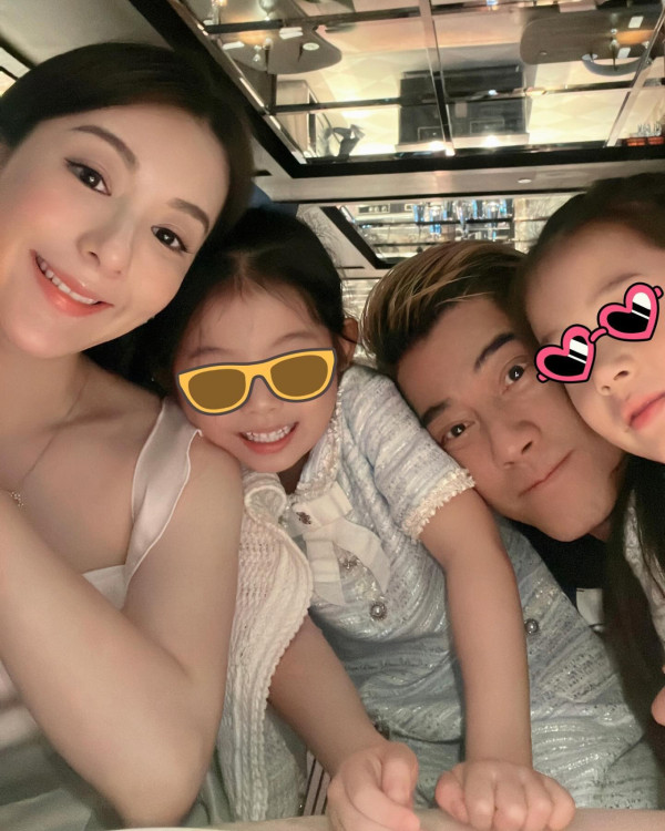 不時在社交平台大晒恩愛的方媛近日就貼出為老公郭富城慶祝生日的照片,並留言表示「親愛的老公生日大快樂🎊🎂🎈😘」,相中兩位小公主就穿上同款連身裙,雖然她們的眼睛分別都用了眼鏡Emoji 遮蓋,不過都明顯可見大女Chantelle的輪廓與媽媽十分相似,就如「方媛2.0」一樣!此外,兩名寶貝囡囡就親自畫了一張生日咭送給爸爸,畫功相當利害,畫上滿滿的小愛心向爸爸示愛!