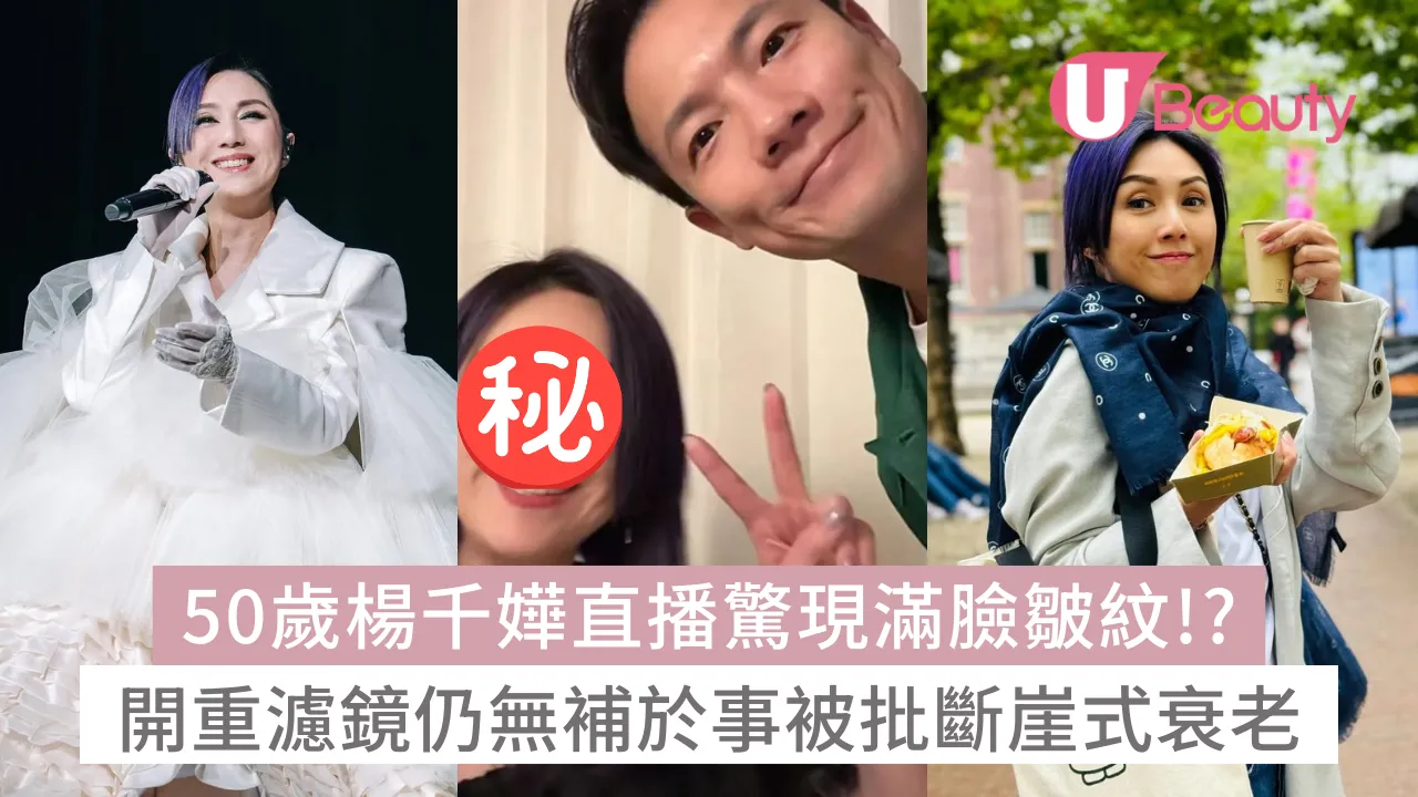 在混亂期間未知是否讓手機的濾鏡還原,見到現年50歲的千嬅的歲月痕跡,臉上的皺紋、表情紋及頸紋都表露無遺,讓網民直言是「斷崖式衰老」!不過其實今次千嬅並非是首次被討論「衰老」,過去一度被指多皺紋,但有網民認為起碼夠自然,總好過膠面。