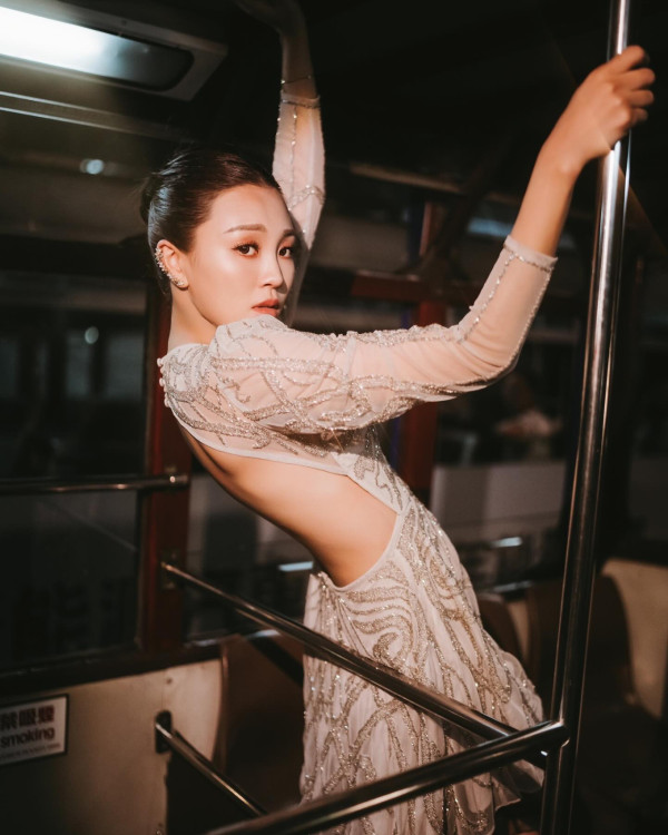 早前宣佈離巢TVB的前港姐蘇韻姿,在個人社交平台上載了一輯在電車拍攝的靚相,配文「🚋Ding ding, My favourite mode of transport in hk, I love the slow pace, the mild breeze and the easiness of life as you watch the lights go by…(叮叮,我在香港最喜歡的交通方式,我喜歡緩慢的節奏、微風和看著燈光掠過的輕鬆生活…」。相中的她身穿裸背的連身裙,盡顯白滑的美背和筆直的長腿,轉型走性感路線的她吸引網民在文中大讚「好靚女」!