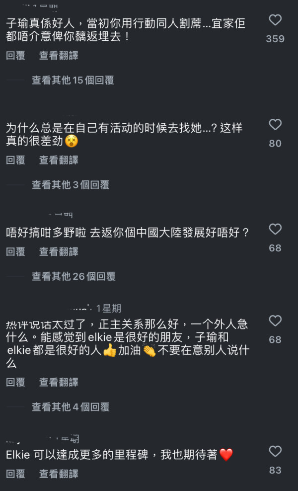 不過Elkie今次的合照就引起部分子瑜的粉絲不滿,紛紛留言表示指Elkie是因為對方的人氣「博流量」,感情並非真的要好。其實粉絲會留下這種言論並非無原因,因為過去Elkie在內地發展,曾偷偷在社交平台刪掉與子瑜的合照,讓大批粉絲表示感到非常失望。