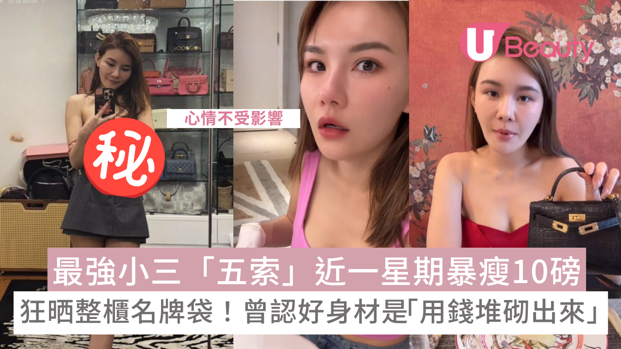 早前被雜誌爆料與66歲的百億富豪馬清鏗拍拖的網紅「五索」鍾睿心(Rachel),二人拍拖長達9年,五索更為男方誕下4名仔女。雖然五索受盡外界所指,不過依舊我行我素,更揚言「有錢嘅話唔介意做小三」,態度囂張引起全城嘩然!不過五索還是敵不過網民的關心,最近在社交平台分享近照自爆一星期減走10磅!
