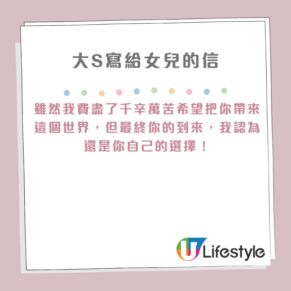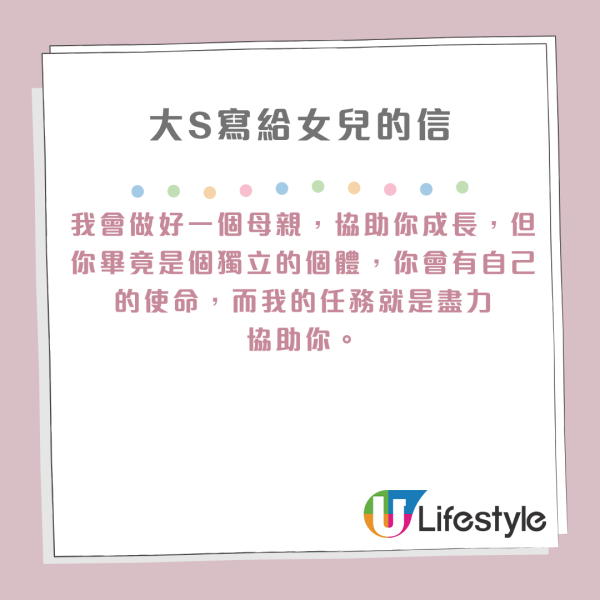 大S寫給女兒的信