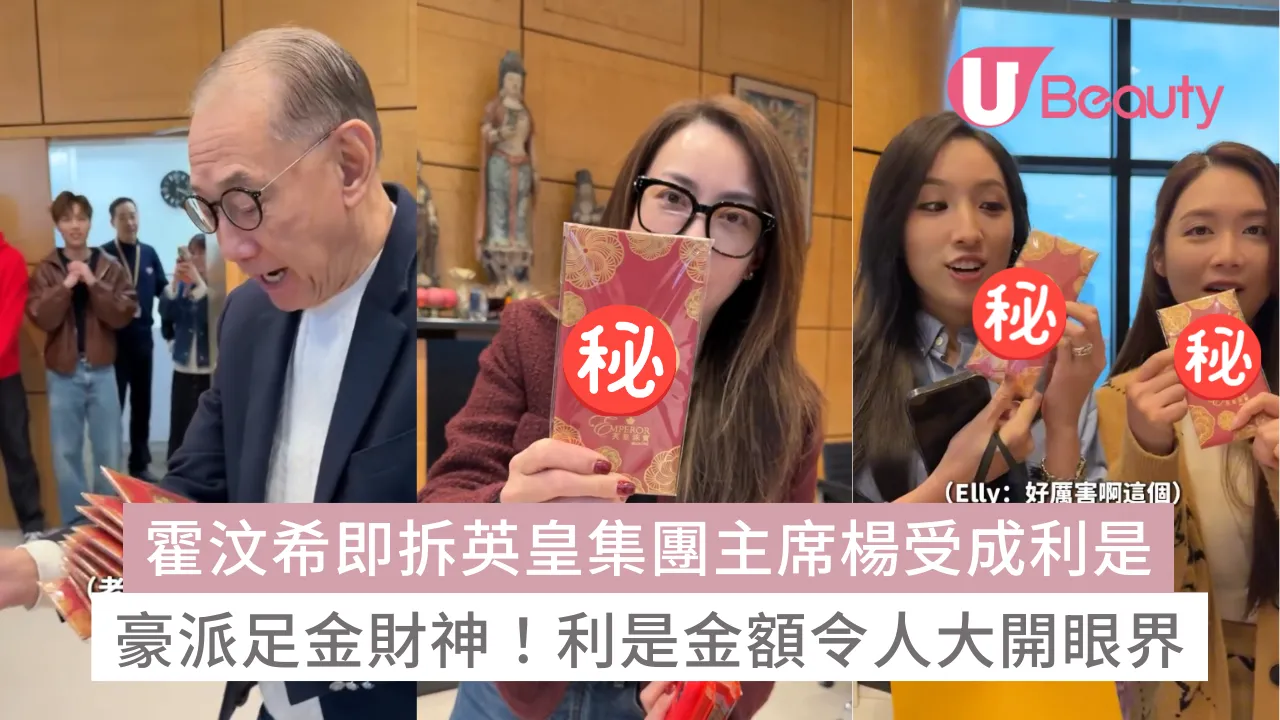 楊受成是英皇集團的大老闆,送禮一向大方,曾豪送張敬軒勞斯萊斯、亦曾送《破地獄》兩位男主角名錶及名酒,新年當然要派利是給一眾員工。日前英皇金牌經理人霍汶希(Mani)就拉大隊向「財神」楊受成拜年,不過利是的金額以及內容物卻震驚在場藝人!
