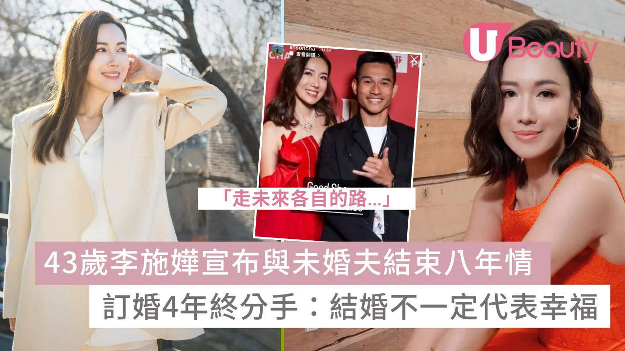 李施嬅與未婚夫車崇健(Anson Cha)於2021年宣佈訂婚後,舉行婚禮一事時隔四年仍然未有動靜。拖足四年後,李施嬅今日(9日)在IG社交平台無預警宣佈與未婚夫分手,表示「兩個月前我和車生做了一個決定,就是換一個方式走未來各自的路。」更揚言「結婚不一定代表幸福」...