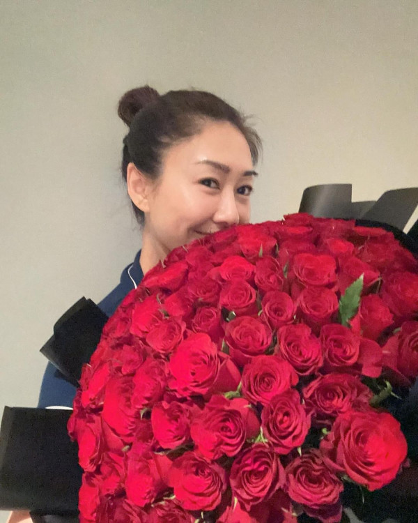 兩屆視后胡定欣入行23年一劇接一劇,工作忙過不停,早前她迎來43歲生日亦要在工作中渡過,不過對此她就並不傷心,更在個人社交平台貼出數張與99支紅玫瑰的自拍照!撰文表示「踏入12點就有人敲酒店房門,嚇親🤪因為我已經熄燈瞓覺,原來有人好有窩心遙距在橫琴送上一束玫瑰🌹多謝樂小姐!多謝Kenneth! 多謝Kacey! 多謝邵氏Management Team同事們!」,原來這一束玫瑰是樂小姐和邵氏的同事送的,回復單身多年的她並對外透露任何感情消息。