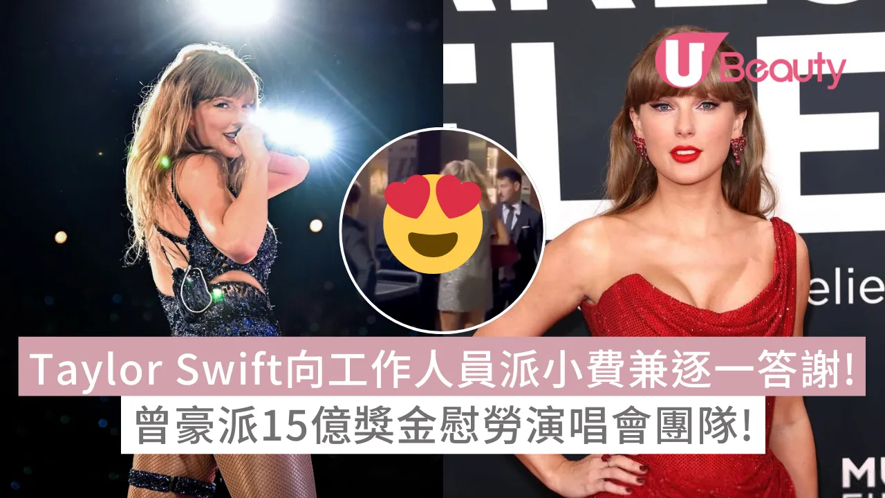 一向寵粉的Taylor Swift,不時為粉絲送上驚喜,除了手寫信及捐款幫助完成粉絲的夢想外,亦曾Miu Miu服飾與樓給粉絲!Taylor Swift亦非常關心一眾幕後工作人員,為答謝全體巡演工作人員的艱辛付出,發放近2億美金獎金(約15.3億港元),早於2023年的北美巡演,Taylor Swift已豪派5500萬美元獎金,連開貨車運送器材的司機都不例外獲得獎金,相當貼心!