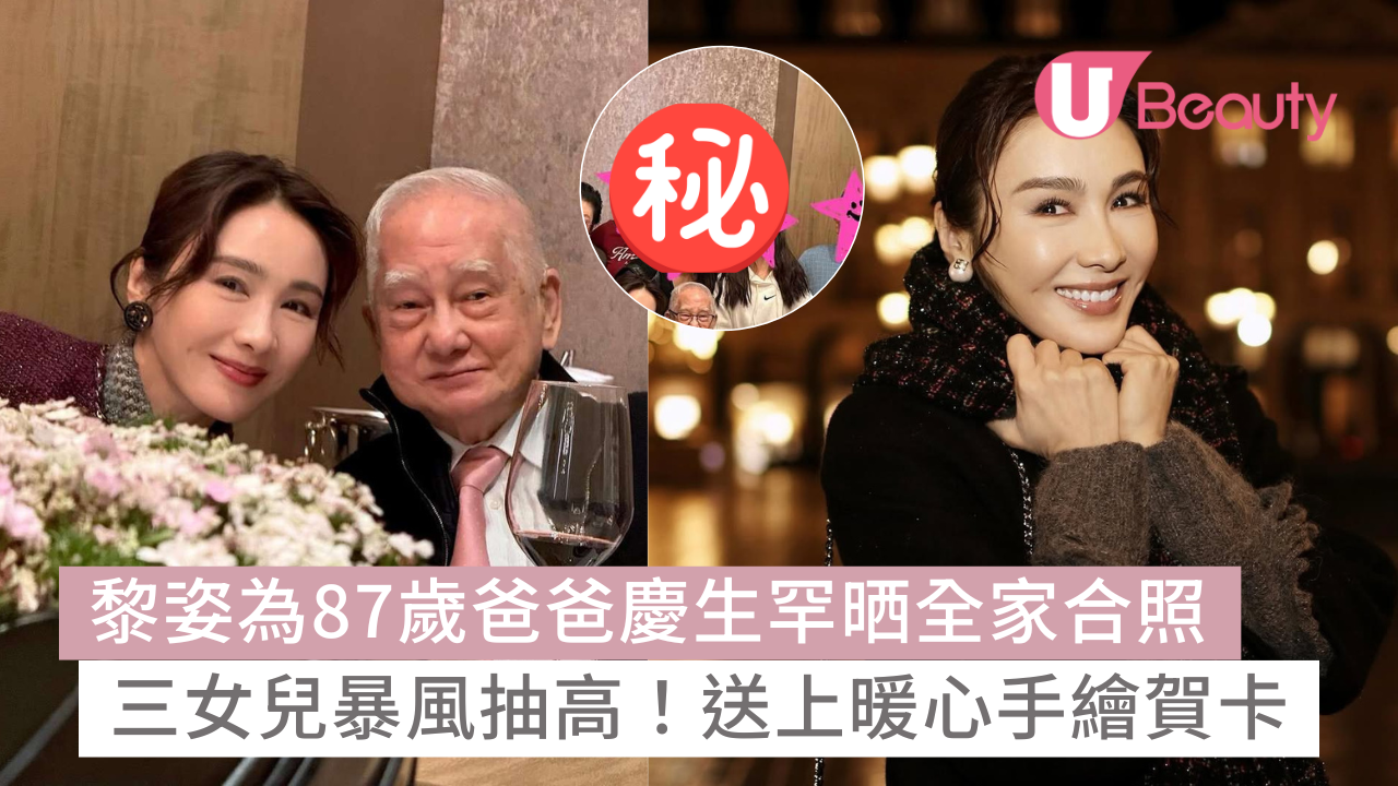 有「最美CEO」稱號的黎姿(現名馬黎珈而),對父母相當有孝心,早前是爸爸87歲生日,黎姿與媽咪、弟弟黎嬰以及3名寶貝女一同食飯慶祝,孫女們更送上手繪賀卡給公公,場面極溫馨。黎姿其後亦在社交平台分享喜悅,三代同堂全家合照罕有曝光。