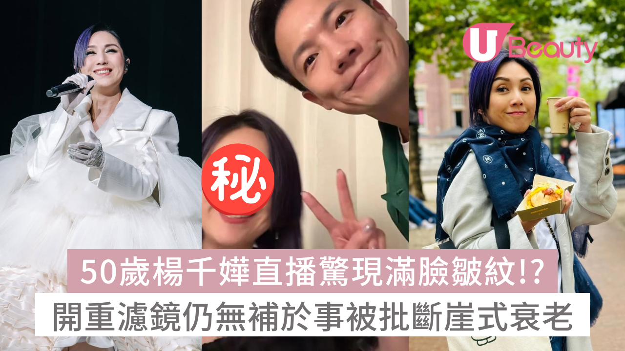 在混亂期間未知是否讓手機的濾鏡還原,見到現年50歲的千嬅的歲月痕跡,臉上的皺紋、表情紋及頸紋都表露無遺,讓網民直言是「斷崖式衰老」!不過其實今次千嬅並非是首次被討論「衰老」,過去一度被指多皺紋,但有網民認為起碼夠自然,總好過膠面。