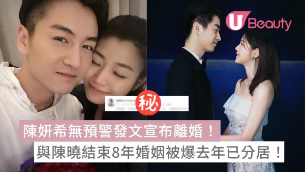 台灣藝人陳妍希與陳曉在社交平台發文宣佈離婚,並表示將共同陪伴孩子成長。兩人在2014年於內地劇集《神鵰俠侶》分別飾演小龍女與楊過因戲生情,於2016年結婚,早前雖然屢傳婚變但二人一直未有正面回應,如今正式發文證實離婚消息。