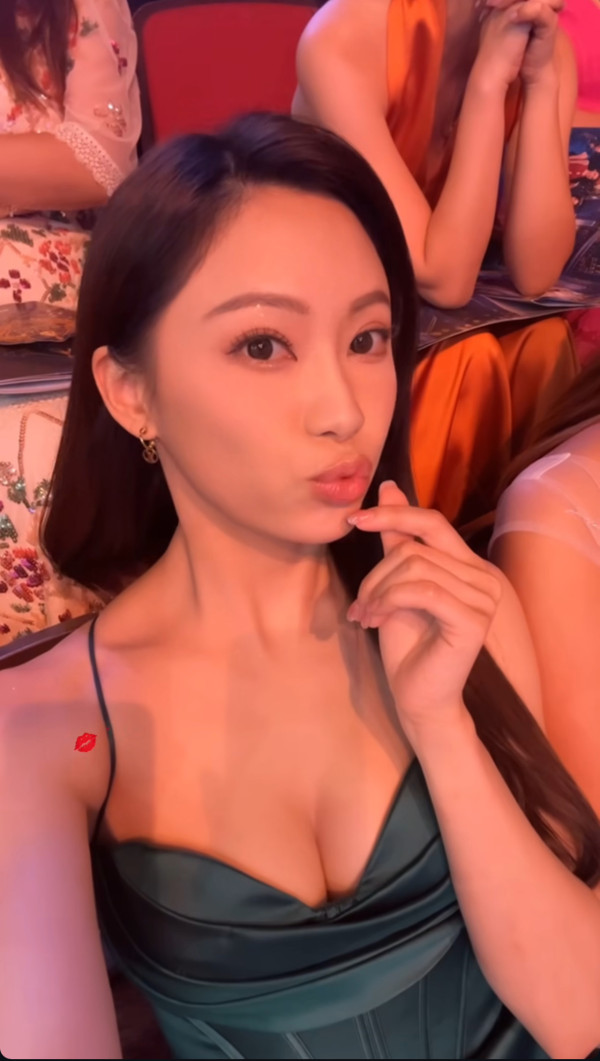 向來頻於更新社交網的Sophie,早前就在個人社交平台貼出同名同姓的樂壇天后葉蒨文(sally)的照片,撰文「其實今晚港姐決賽贏嗰個係我,因為我成功同葉蒨文合照🤣🙈」。相中的Sophie當天身穿deep U的綠色晚禮服,大晒澎湃的上圍,胸前深長的事業線令人目不轉睛!而在她身旁的sally就手撘着Sophie的膊頭,二位葉蒨文當天都狀態大勇。