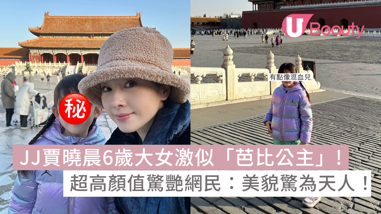 不時更新社交網的JJ賈曉晨早前就晒出與6歲大女小飯兜到北京過聖誕的照片,配文「聖誕中西文化活動」。當天JJ賈曉晨就單拖帶囡囡到北京故宮遊覽,不過JJ的衣著就被囡囡搶晒鏡,身穿黑色外套再戴上一頂帽子,相當之低調,遮蓋了她的美貌;相反不少網民都把焦點放在小飯兜精緻的五官上,超大眼深邃雙眼皮,加上櫻桃小咀,激似「芭比公主」,完美遺傳媽媽優良基因,令網民忍不住多看幾眼!