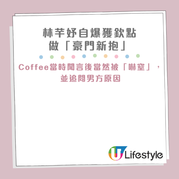Coffee當時聞言後當然被「嚇窒」,並追問男方原因,Coffee分享原因後連節目中的嘉賓都被Coffee的言論感到驚訝,紛紛指這位富二代的爸爸都非常直接...