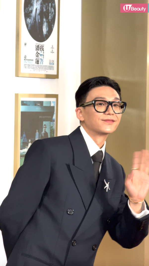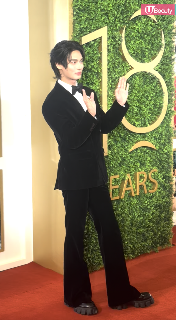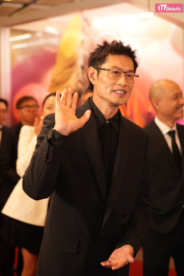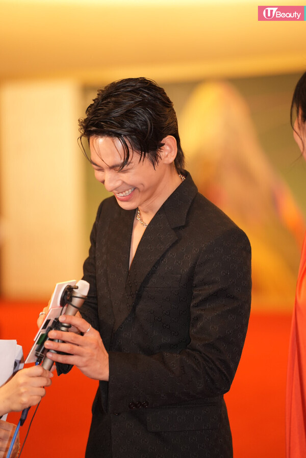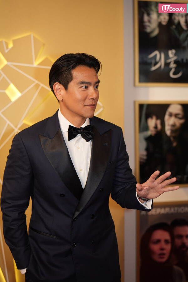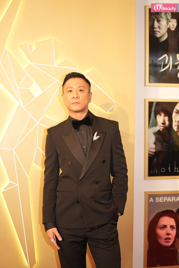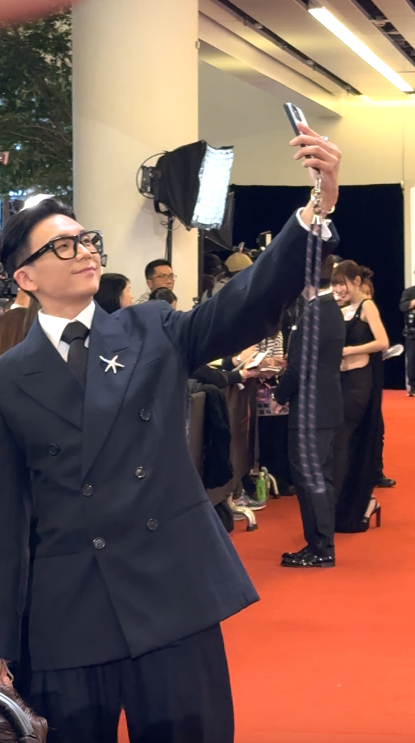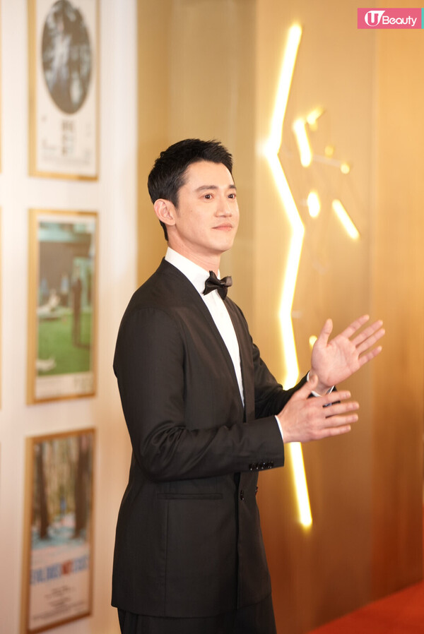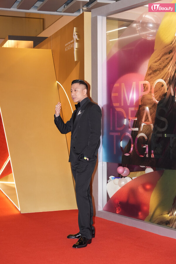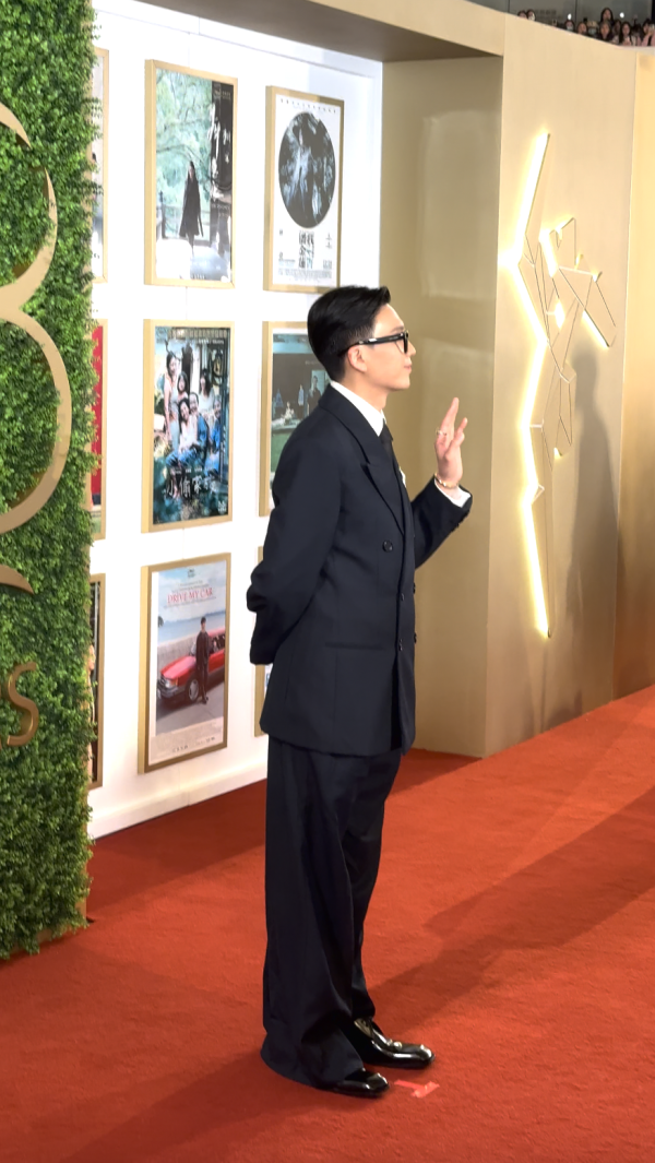 有份競逐男配角獎的朱栢康以型格西裝登場,一向搞笑的他,更在鏡頭前在擺Pose!