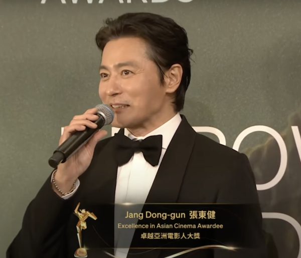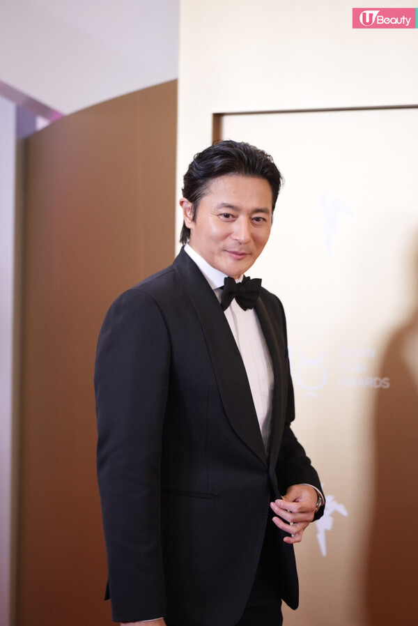 先奪亞洲電影人大獎的韓國影帝張東健以黑色西裝,並配戴煲呔出場,端莊而充滿活力!