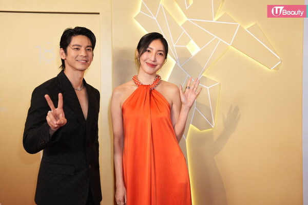 林柏宏以Gucci 西裝外套配搭Tiffany & Co. 珠寶,而楊謹華則穿上Stella McCartney的橙色禮服,非常搶眼!