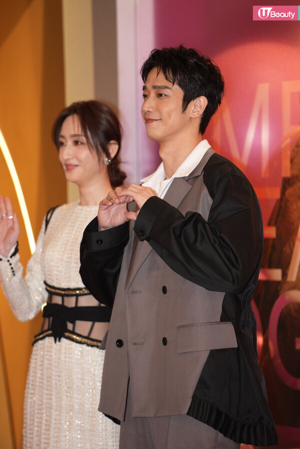 張繼聰與謝安琪夫妻檔牽手踏入紅地毯,謝安琪穿著抹胸長裙,張繼聰就穿著黑色西裝及兩人佩戴 Hublot 腕錶,兩人更佩戴Chaumet 珠寶,非常合襯!