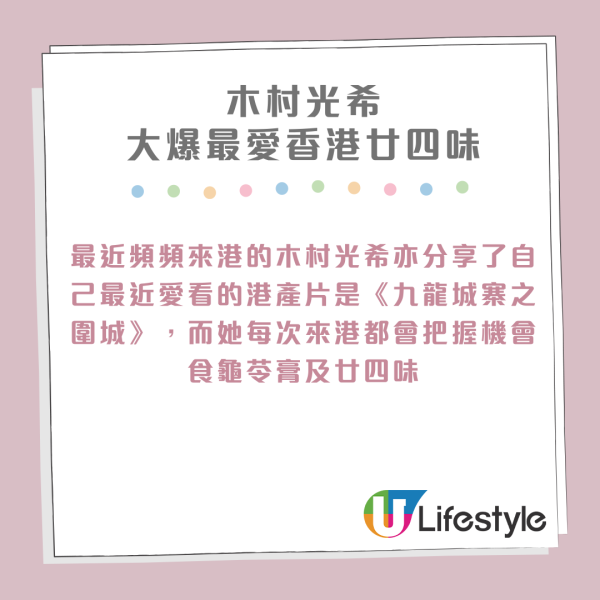 最近頻頻來港的木村光希亦分享了自己最近愛看的港產片是《九龍城寨之圍城》,而她每次來港都會把握機會食龜苓膏及廿四味,背後竟然是因為...
