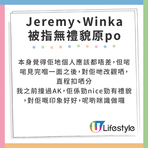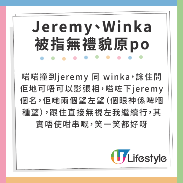 Jeremy、Winka被指無禮貌