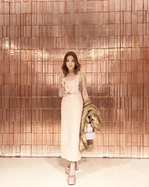 現身台灣時尚晚宴的翁嘉穗,到場時帶備的手袋中亦掛上最近的心頭好公仔LABUBU,貴氣十足。而當日翁嘉穗的造型則身穿超低胸毛毛背心配上黑色短裙再加黑色尖頭斗零踭高踭鞋,盡顯翁嘉穗凹凸有致的豐滿身材和白滑纖長美腿,加上面部仍緊緻滑溜,整體完全看不出歲月痕跡,可說是靚絕全場。
