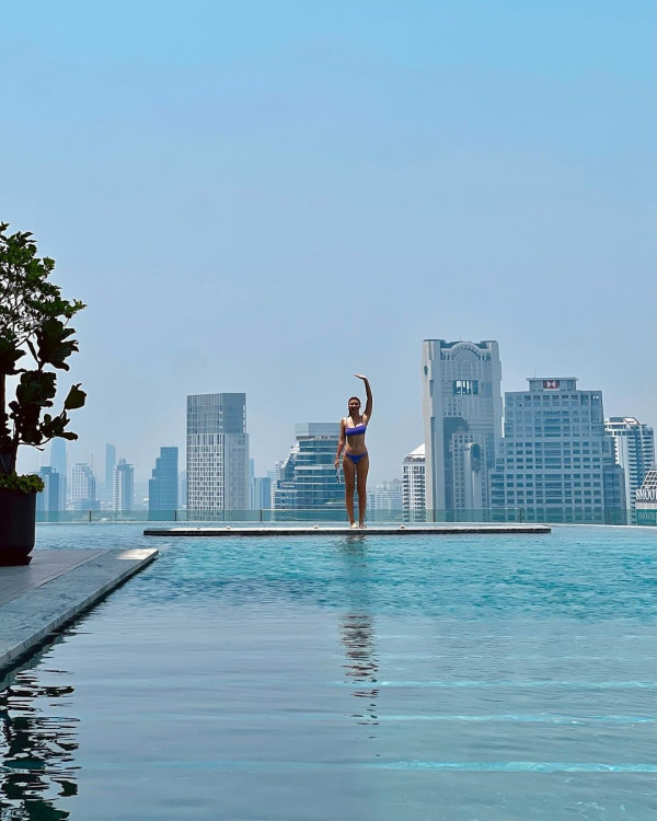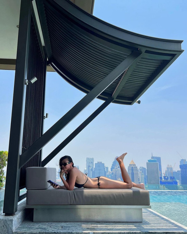 Tina遺傳到父母的優良基因,擁有高䠷的身材及精緻的五官。近日她分享到新加坡旅遊的相片,相中的她穿上小背心,展露纖細的腰部及健康的小麥肌膚,少女味濃!她更換上泳裝,到酒店的無邊際泳池游泳,大騷美背!相片吸引不少網民留言大派心心眼,更表示「Pretty girl all grown up ❤️(美麗女孩都長大了)」!