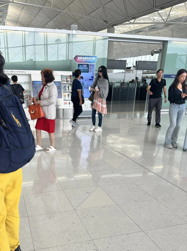 有網民就在社交平台上分享在香港機偶遇范冰冰的照片,興奮表示「在機埸排隊安檢碰到范冰冰了!!」,相中的冰冰當天身穿了一條緊身牛仔長褲,上身就穿上一條連身裙再加上灰色的披肩,戴上太陽眼鏡低調現身機埸。