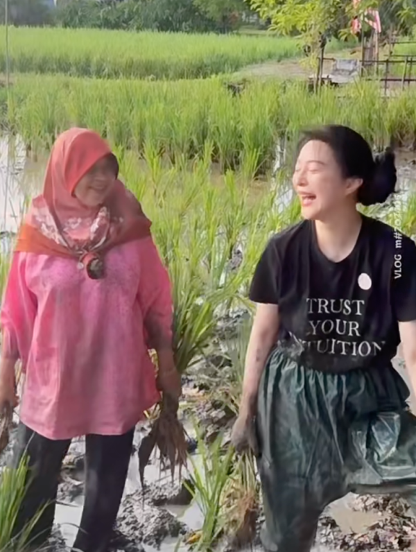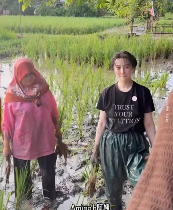 積極尋找機會復出的范冰冰就飛到馬來西亞為新劇《地母》進行拍攝,她拋開女神形象出演一名農村婦人。最近她就在社交平台分享學插秧的影片,撰文表示「我在吉打的日子⋯⋯」,影片中的她打扮樸素並穿上灰色T恤及黑色七分褲赤腳踏入泥濘中,努力地向農婦姨姨們學插秧,即使不小心跌倒了也面帶笑容指一切都值得,絲毫沒有女神包袱,亦表示為了角色不介意污糟!