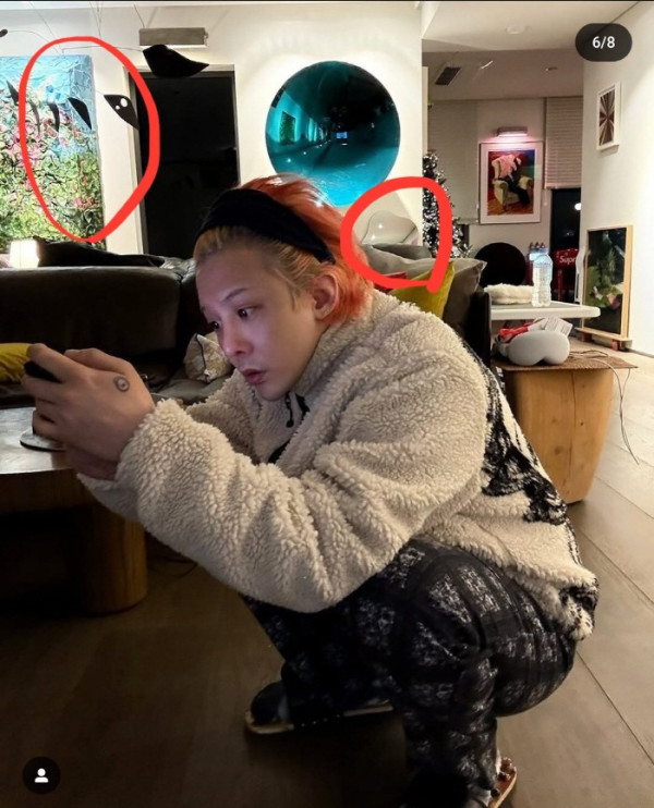 - 沙發與裝潢::許多粉絲指出,李珠妍照片中的黑色沙發,以及背景中畫框的擺設方式,與先前曝光的 G-Dragon 住家內部裝潢極為相似,甚至可以說是「一模一樣」 1。這讓人聯想起過去他們數次因在相似背景下拍照而引發的緋聞 3。