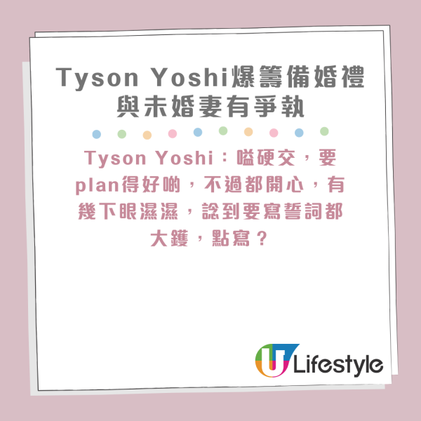 Tyson Yoshi 大講籌備婚禮細節