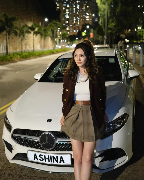 在感情上向來都低調的Ashina,居然高調晒恩愛?!她就在社交平台上大晒自己的愛車Benz的車牌,車牌的英文名為「Ashina」,未知是否男友Brian送的呢?她再配文表示「深夜浪漫🤍🌃💫」,看來與男友還是十分甜蜜!