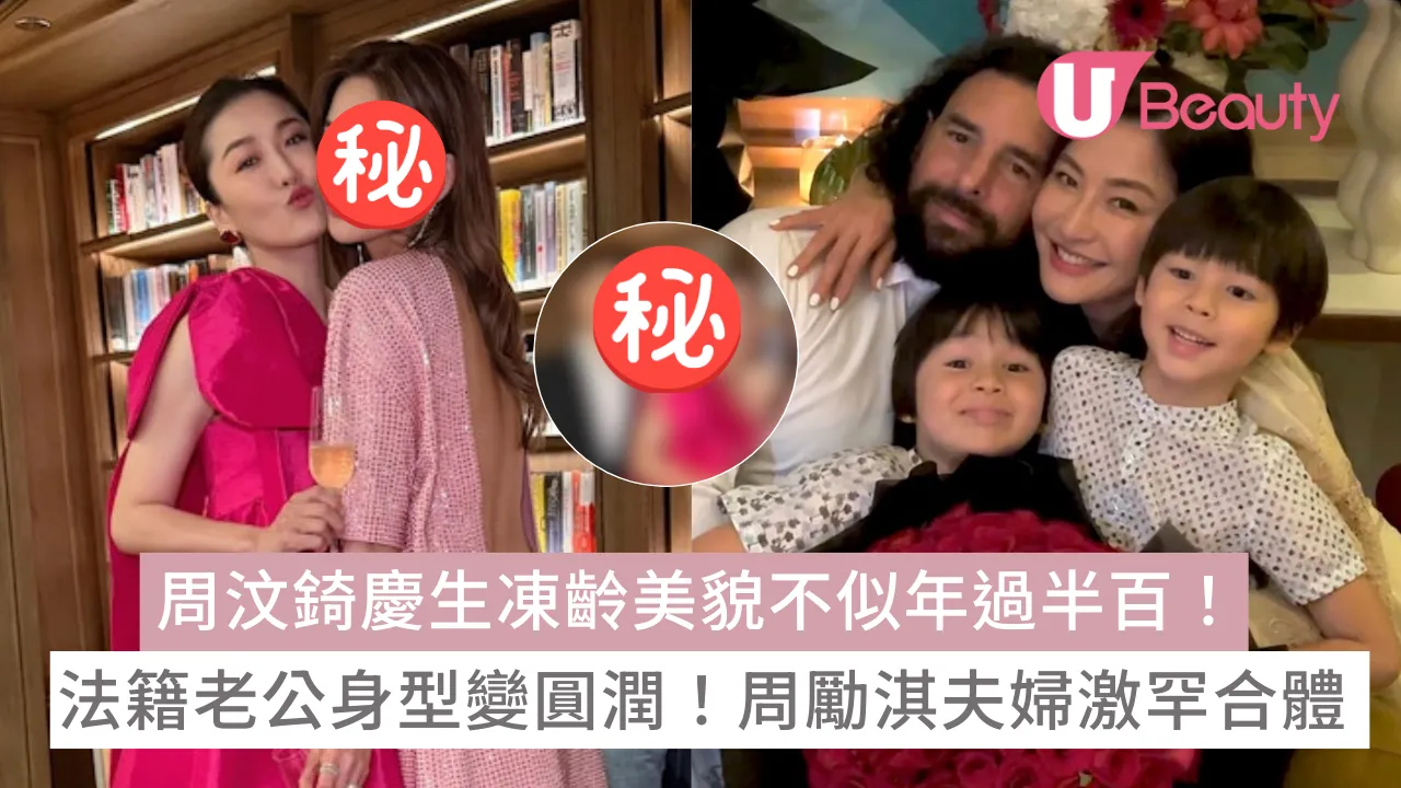 妹妹周勵淇之後在社交平台分享多張生日聚會照,二人面錫錫合照,她並留言寫下「又一年520,希望你繼續發光發亮,做個開心可愛的小女人,Love u!」見到壽星女Kathy身穿粉紅色閃片吊帶裙,大晒玉背與長腿,皮膚狀態極好,幾乎白裡透紅,臉上無半點瑕疵和皺紋,雖然已經51歲,但保養得就如30歲一樣,真的是在逆齡中生長!除此之外,Kathy法籍丈夫Julien Lepeu和兩位兒子都有現身在生日派對上,非常幸福!
