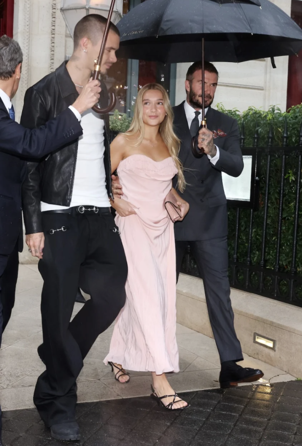 被譽為「寵女達人」的丈夫碧咸(David Beckham)再次化身「最強護花使者」,在雨中為女兒「哈七」(Harper Seven)撐傘,全程如保鏢般貼身護送,父愛滿溢的畫面溫馨動人。碧咸後來亦有在社交平台分享出發時裝騷前的照片,並配文「珍惜Harper仍可坐在我身上化妝的時光,我愛你!」不愧是寵女達人!