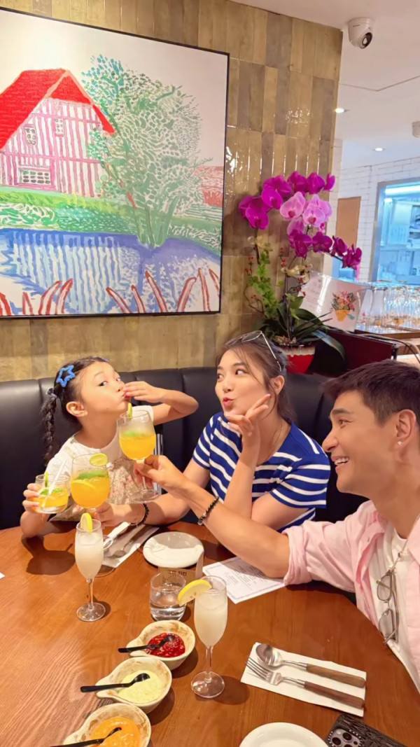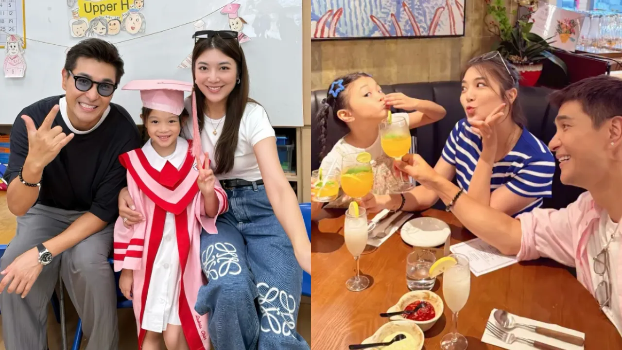 陳展鵬和單文柔的囡囡「小豬比」幼稚園畢業,照片中三人一起「比Yeah」非常高興!囡囡身穿粉色畢業袍,眼仔碌碌地甜笑時似足媽媽單文柔,有9分相像,遺傳了媽媽優良DNA!