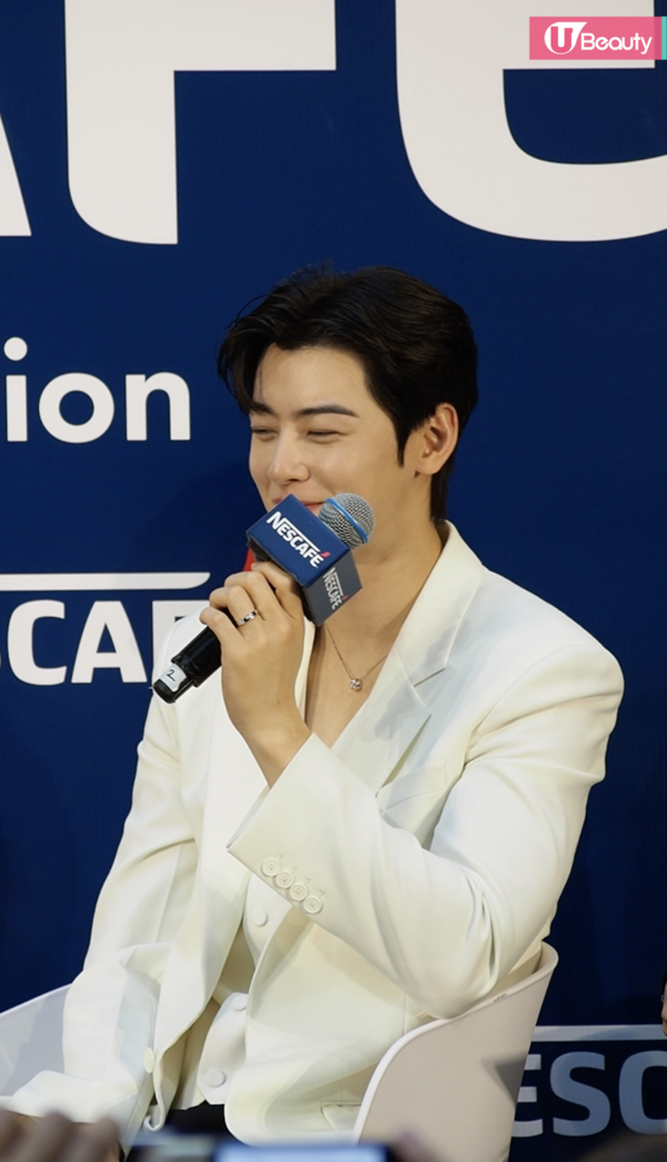昨時深夜抵港的車銀優今日以一身白色西裝現身九龍塘出席代言的品牌活動,一向是暖男的車銀優在活動用廣東話自我介紹、向粉絲表白外,更大派3款不同心心Pose,引來現場粉絲尖叫聲不斷,不愧是寵粉達人!