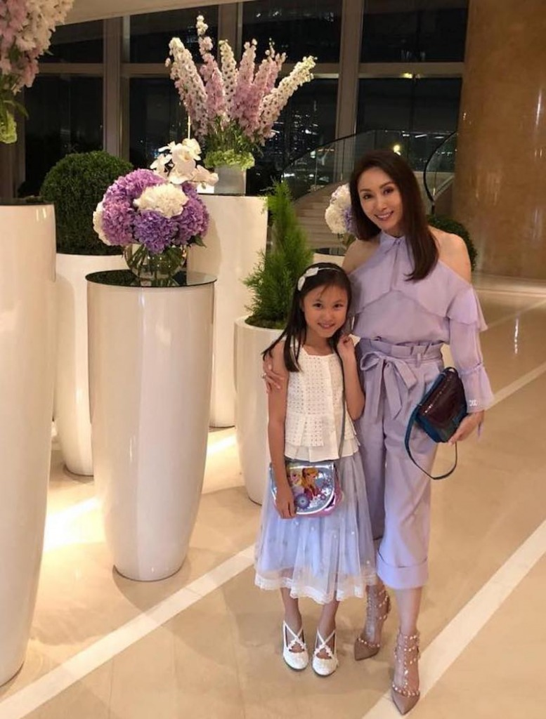 郭可盈亦晒出女兒Tania的近照,相中Tania穿著一件深棕色的開衩連身裙,展露白滑大長腿,完美遺傳媽媽的Model身材,不但身型高䠷苗條,而且五官標緻玲瓏,越大越靚女!