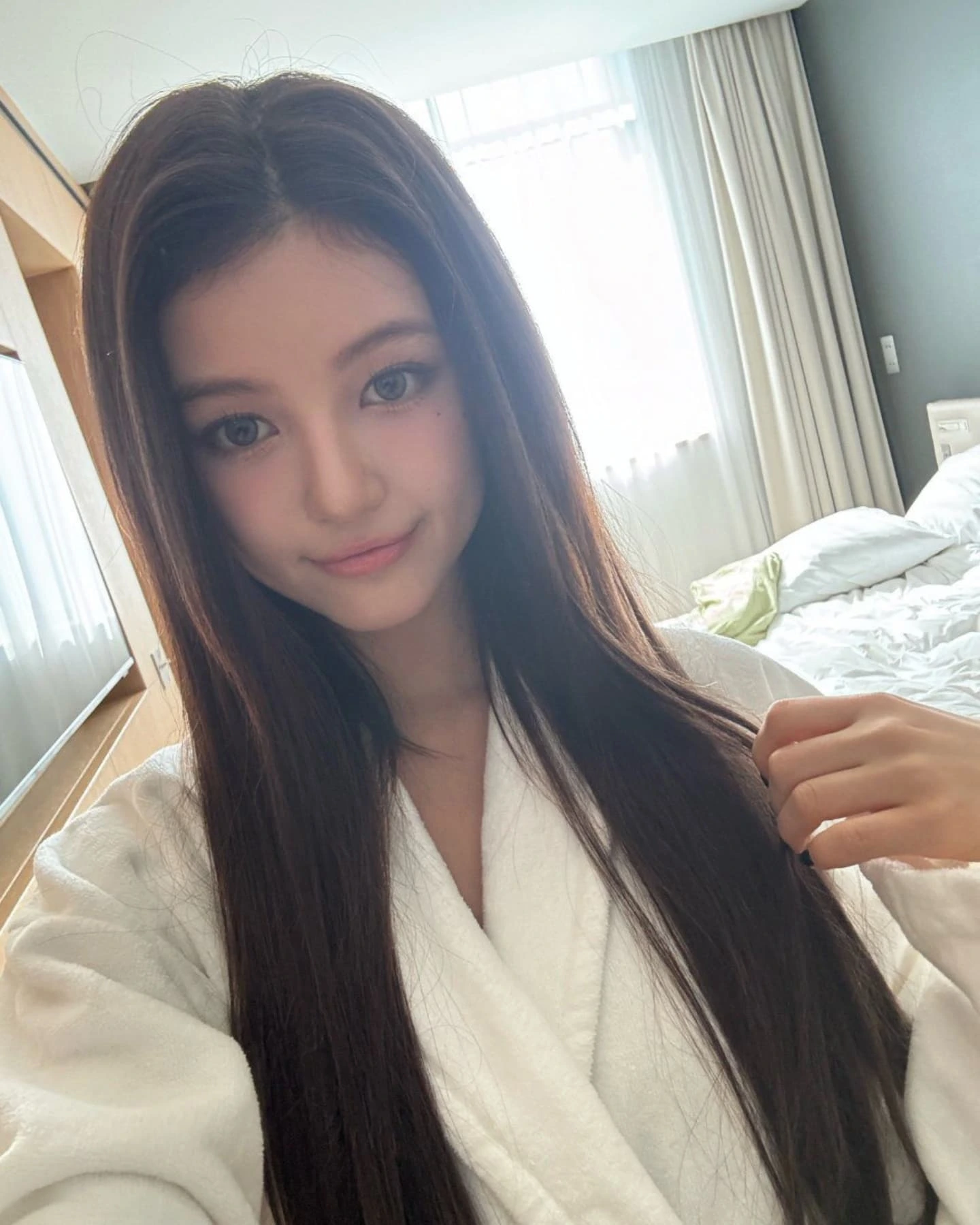 今年19歲的Hanni在出道後一直以來都以長髮造型為主,在今次新專輯後,長時間戴著假髮進行活動,令外界非常意外她非常適合這種帶有層次感的耳下短髮。而她受訪時表示對假髮的造型十分滿意,更笑言當時在髮型師完成造型後,覺得自己瞬間變成了「一個雞蛋」,非常可愛。