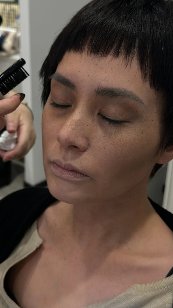 近日阿嬌在新電影《好好說再見》中飾演脫髮癌症病人,而為了更好詮釋角色,阿嬌亦刻意扮醜,日前她亦在小紅書貼出幕後花絮相片。相中見阿嬌戴上短髮眉上瀏海造型的假髮,將眼窩化更凹陷,又畫上極密集雀斑,營造出虛弱的感覺,看起來十分憔悴,與以往明星亮麗形象十分不同!