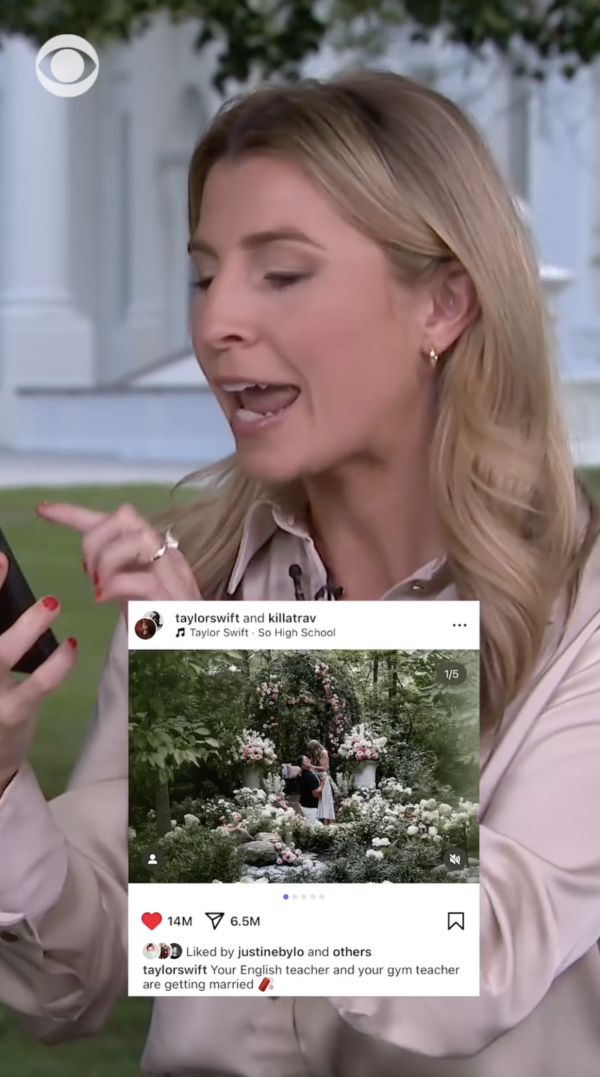 Taylor Swift宣布訂婚當日,美國總統特朗普在白宮內閣會議中,也被問到對Taylor Swift與Travis Kelce結婚的看法﹐當時特朗普就回覆兩位都是了不起的人,並祝他們好運。