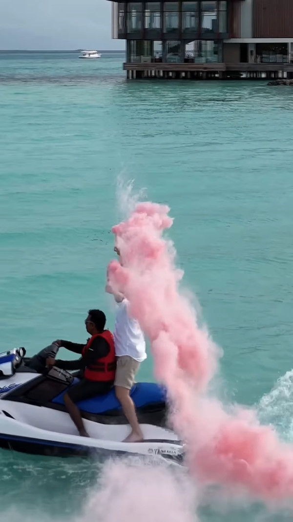 LISA泰國億萬名媛閨密公布BB性別!豪坐遊艇舉煙霧棒揭曉!浮誇場面極壯觀!