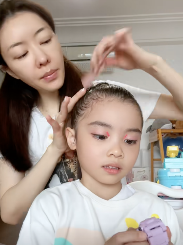 Lynn在個人社交平台發佈了一段記錄幫囡囡化妝的影片,並撰文表示「 記錄寶貝第一次登上舞台,表演成功啦!」,影片一開始囡囡Kaylor就深情地看著鏡頭,五官精緻,超有少女感!而Kaylor就乖乖坐定定等媽媽為她化妝,Lynn再溫柔問道「會唔會唔舒服?會唔會遮住眼?」。隨後妹妹Lyvia都有入鏡,更親吻了Kaylor的臉頰,感情相當好呢~